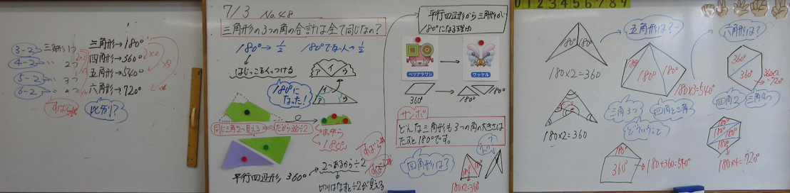 敷き詰めを通して,図形の内角の和との学習を関連付けた見方を引き出すことができた時間でした。